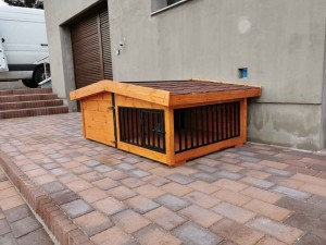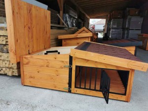 • Psia búda musí byť postavená na betónovom základe alebo na palete. Psie búdy postavené na zem, do blata alebo do vody môžu aj napriek impregnácií začať oveľa skôr trúchnúť.